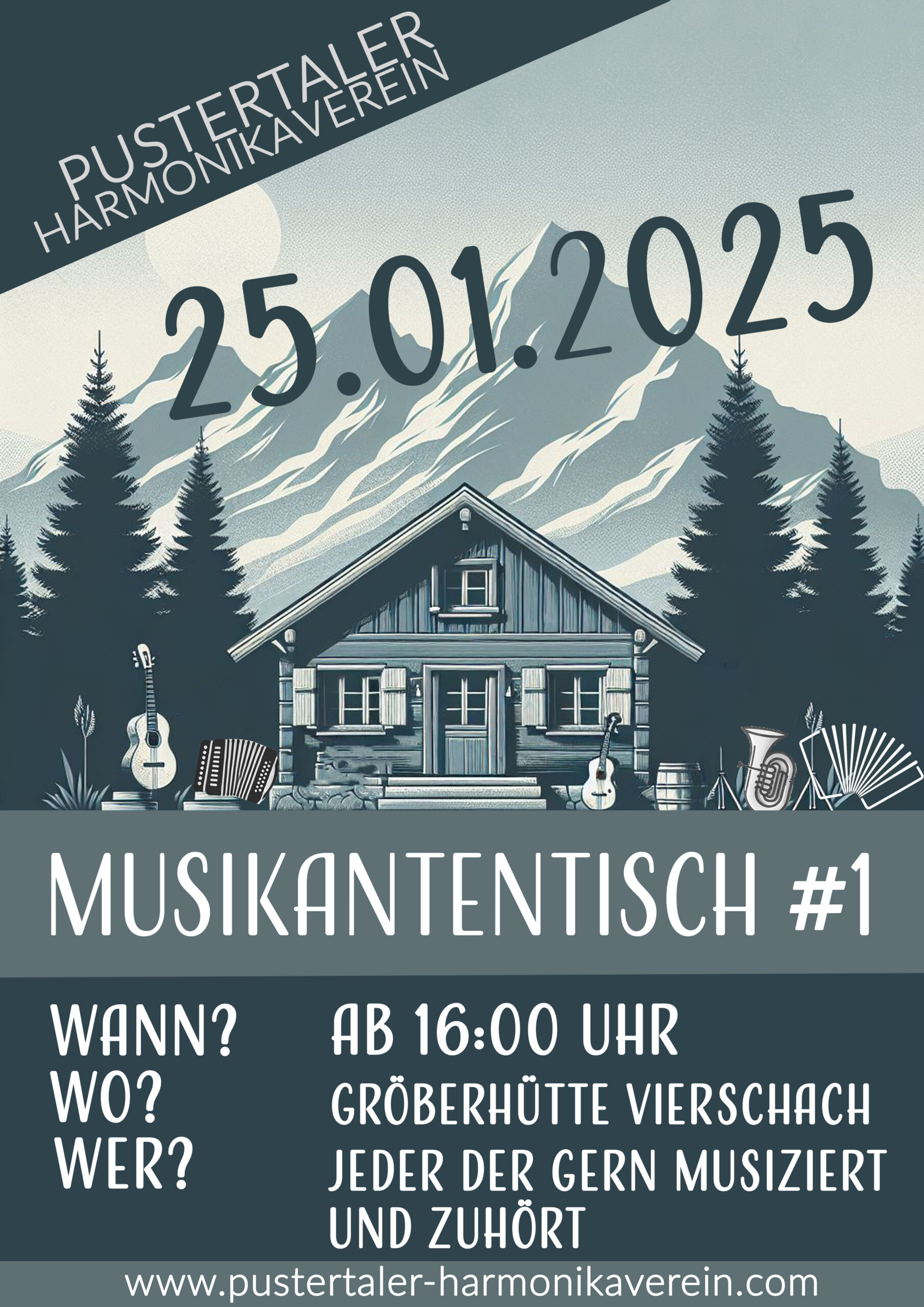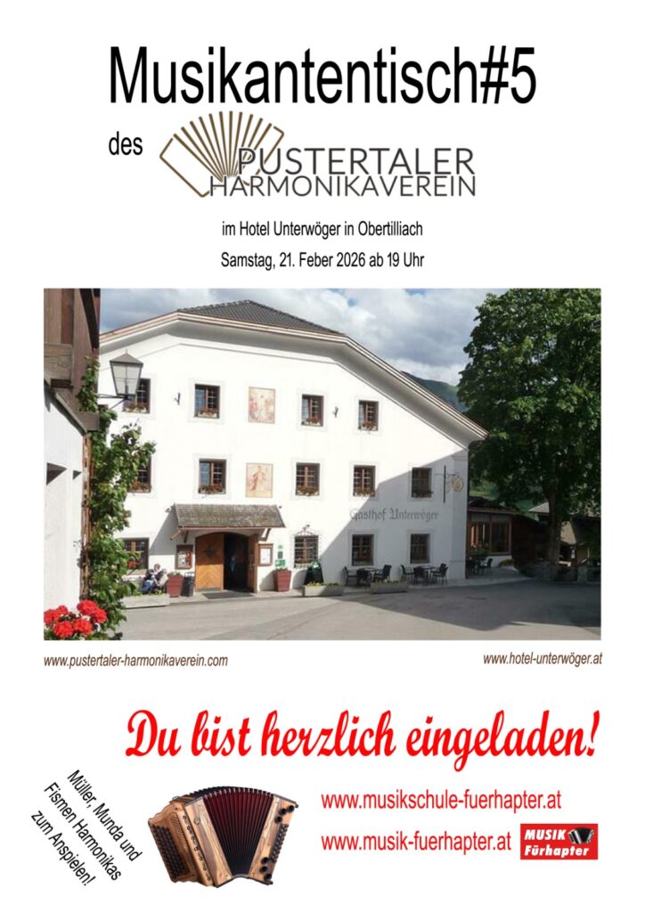 Am 21. Februar 2025 lädt der Pustertaler Harmonikaverein gemeinsam mit MUSIK FÜRHAPTER wieder herzlich zum Musikantentisch in Obertilliach ein. – AB 19:00 Uhr