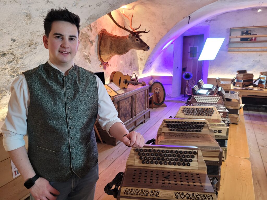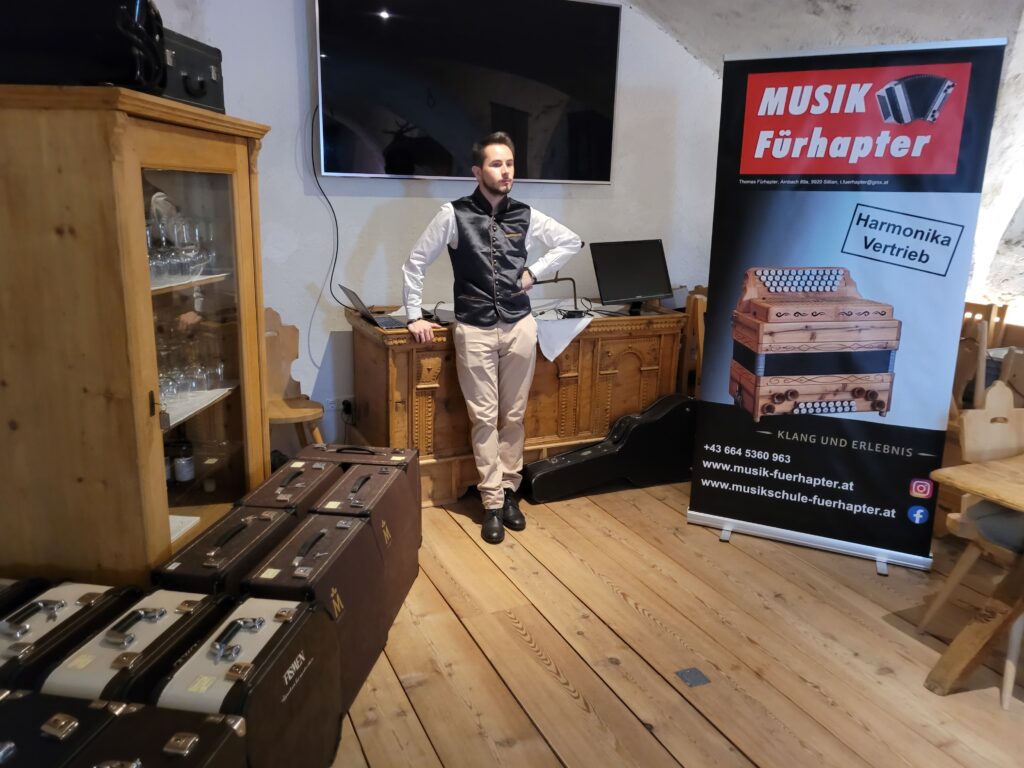 Der Vorraum wurde zum Probespielen und gemeinsamen Musizieren genutzt, während im gefüllten Saal die Harmonikaspieler und Musikensembles von Robert Bodner und Florian Außerlechner angekündigt wurden und ihre Musikstücke vortrugen.